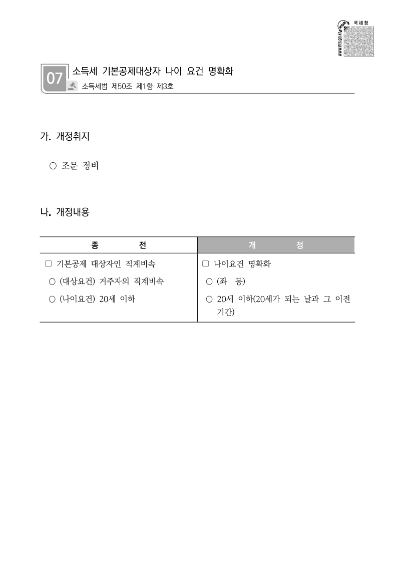 1) 기본공제(나이요건 명확화)