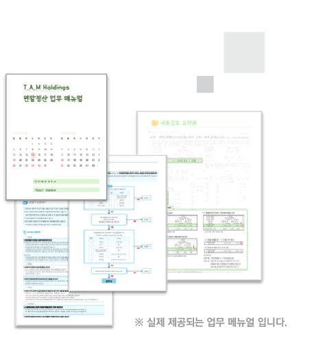 현 시대는 누구나 ‘전문성’을 너무 쉽게 말합니다. 그러나 구체화된 전문성은 수년간의 축적된 실무 경험과 전문지식이 뒷받침될 때 구현할 수 있는 결과입니다. T.A.M Holdings의 자체제작 업무 매뉴얼, 이렇게 다릅니다 ■ 수십만 명의 연말정산 업무를 수행하며 축적된 업무 Know-how ■ 반복된 실무 경험을 기반으로 집필한 구체화된 업무 매뉴얼 ■ 세무지식과 실무경험이 결합된 정교한 전문성 |