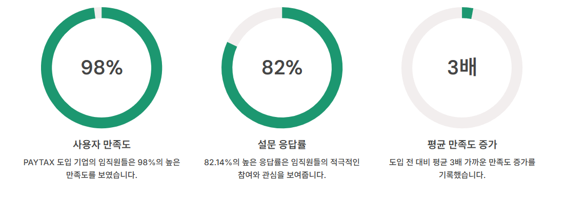 PAYTAX 도입 기업들은 연말정산 관련 임직원 만족도가 평균 3배 가까이 향상되는 뚜렷한 효과를 확인했습니다.