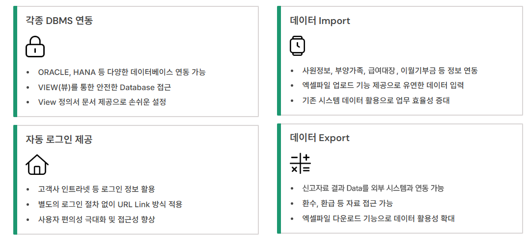 이러한 체계적인 유지보수 시스템은 연말정산 기간 중 발생할 수 있는 시스템 장애나 문의사항에 신속하게 대응하여, 고객사의 업무 연속성을 보장합니다.